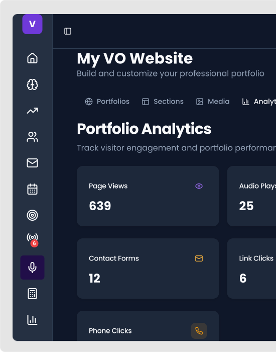 With VoFlow - My VO Website™, you get a professionally built voice over site already set up and ready to go.